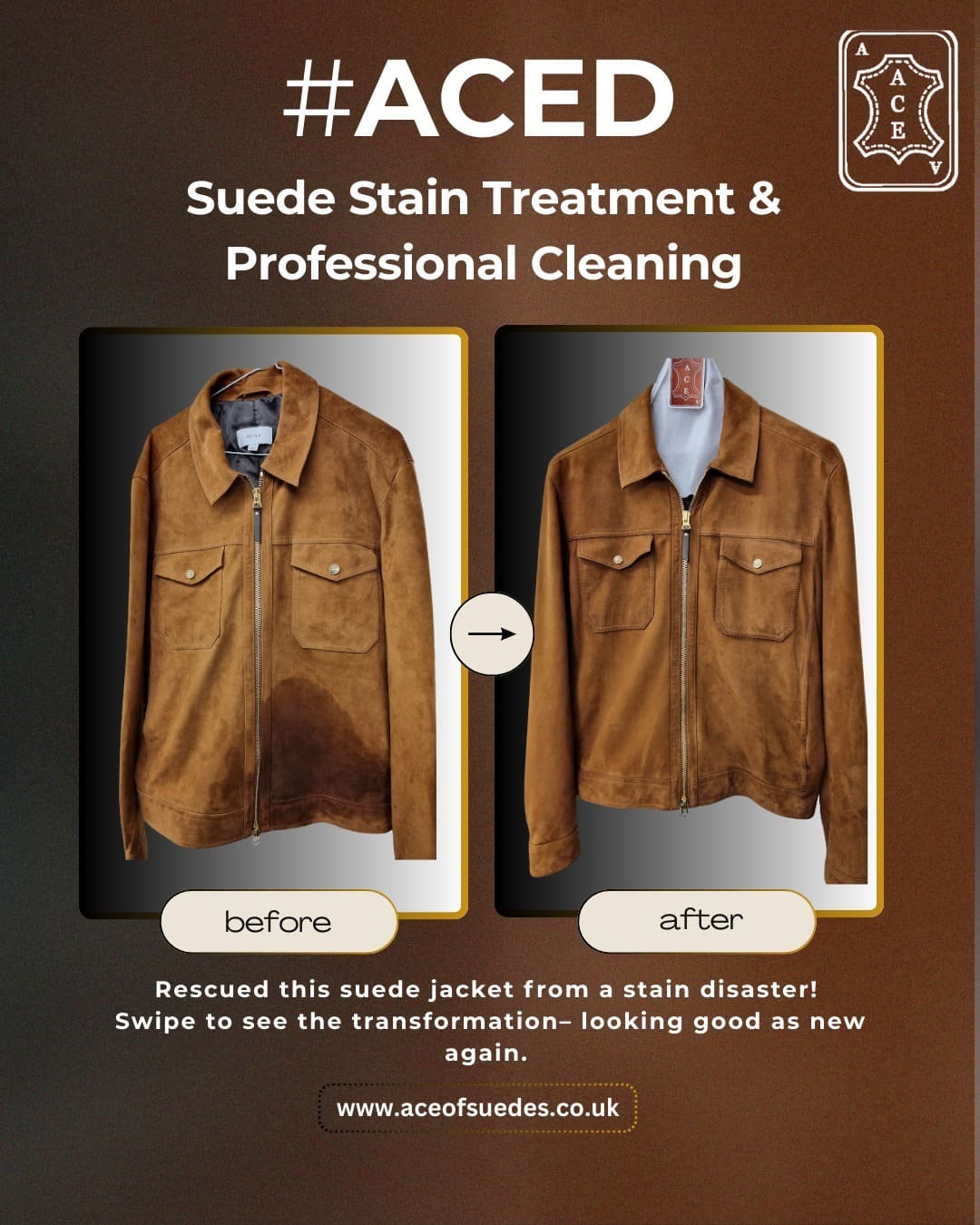Our ozone treatment can also be used following treatment where necessary to help with the removal of any unwanted or musky odours. Ace of Suedes are exclusively recommended by 1000’s of dry cleaners, retails, designers and private clients across the country.